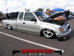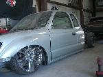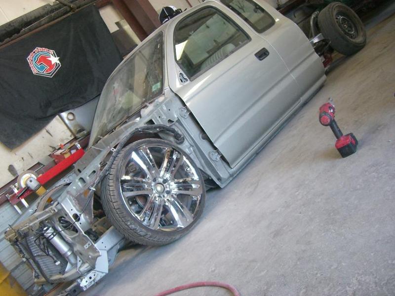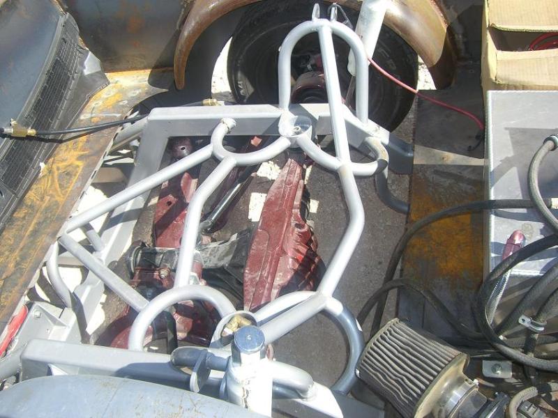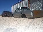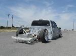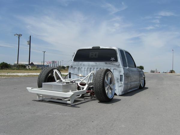 Stock Floor full frame. RX7 IRS fast bagged. Custom lower control arms with uni-balls, heim ends and D.O.M. tubing by Rudy's Rod & Custom. Slam Specialties sponsored 1/2" Digital Stealh Valves controlled by Slam Specialties Digital Stealth Controller, Slam Specialties rs-62 1/2" port all four corners. Sponsored three all silver Air Zenith compresors.