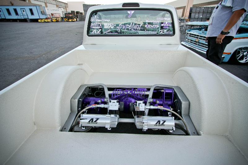 2002 Front end, shaved door handles, molded tailgate and rollpant. Painted White Diamond By Bryan @ RF Customs.