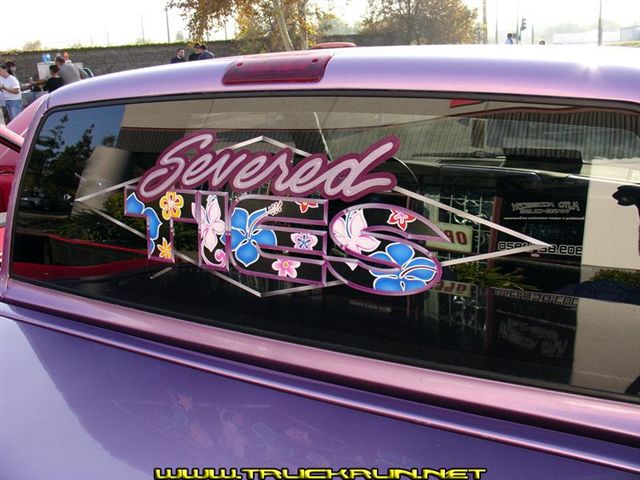 <Body bGCOLOR="#000000" TEXT="#FF99FF" LINK="#CC00FF" VLINK="#6600CC" ALINK="#3333FF"><font face="verdana"><b>What's up I'm Summer or <>Sue Ellen<> I'm the secretary of the So Cal I.E. Chapter of Severed Ties. I have a bagged and shaved Pinkish Purple 97' Chevy S-10 that's really girlie!!!.</b>
