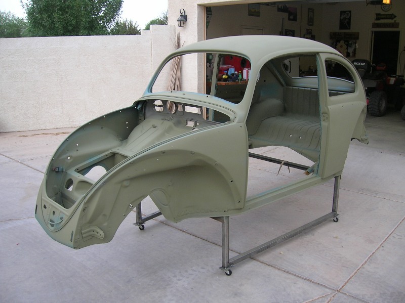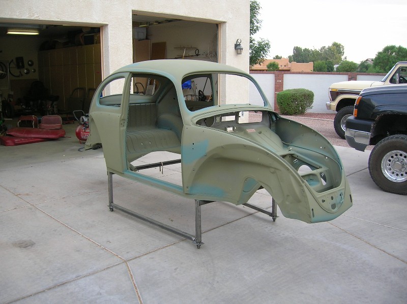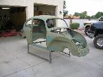 bullet fenders with the bullets shaved and drilled for italian only turn signals, 64 only vert decklid, EMPI push bars, EMPI rubber bumper guards, GHE vent wing deflectors, EMPI globe bumper topper, NOS vent splitters, OG Volkswagen 10 slat rack.