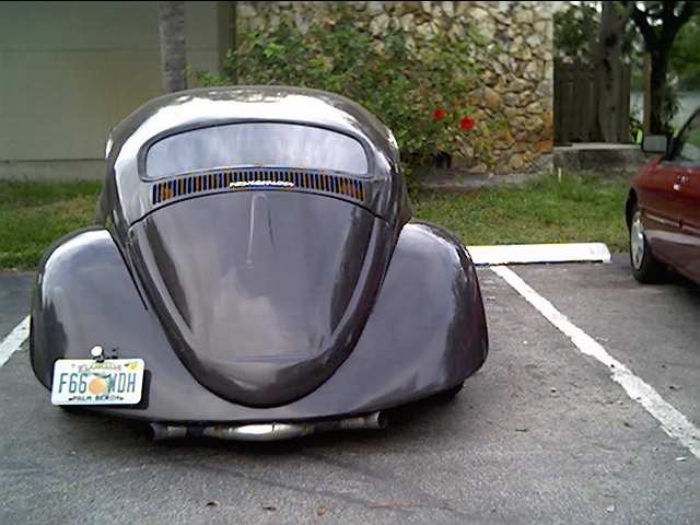 6 inch chop, hydros, suicide doors, shaved lights, bug tilt nose on a superbeetle, (wasnt easy), relocated handles, cut 2 fenders in half and fiberglassed them the the tilt nose, also flared nose to a square with the ol chicken wire fiberglass trick, lots of body mods