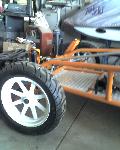 16x3 in front with motorcycle tires and 16x12 in rear with 31s
