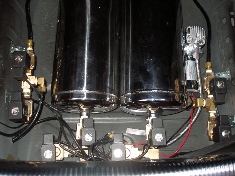 Bagged, Universal air strut bag (front), Slam specialties Bags (rear), 2 Chrome 5 gallon 4 port each tanks, 8 valves (4 1/2in & 4 3/8in), viar 380 compressor