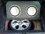 7" widescreen in dash pioneer dvd monitor with 5.1 channel surround sound. 2 12" alumapro alchemy subs in a sealed box, 1500x1 alpine V12 amp, 1 farad stinger capacitor, 0 gauge Stinger power wire, 11 speaker system including the 2 subs