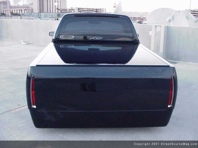 One of the first items at hand would be to shave the emblems on the front fenders to give them the smooth look. To keep the front moving, a Stillen front bumper was installed. Moving back to the rear, the decision was to shave the hood squirters, cab seems, rain gutters and wiper cowl. Still trying to find the rear of his ride, Thomas found other items, which would end up being replaced with new materials. The gas filler door was relocated into the bed. The bed caps, third brake light and the locks for the tonneau cover were shaved.