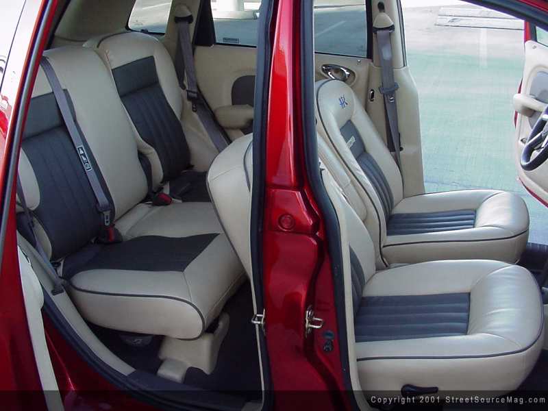 When it comes to rollers, Larry called upon help from the guys at Colorado Customs. The wheels used would be slotted Lazears. In the rear, 20x8” wrapped with BF Goodrich 255/35/20’s. For a true hot rod inspired look, the front was treated to 18x7” and wrapped in BF Goodrich 245/40/18’s. To help move the Cruiser along with the upgrade in wheels, Larry decided to have a Whipple supercharger installed to add a few more horses. Now ready to work the interior, Larry managed to utilize many of the APC products to show off what they’ve been working on. One of the first items at hand to be reworked were the seats.