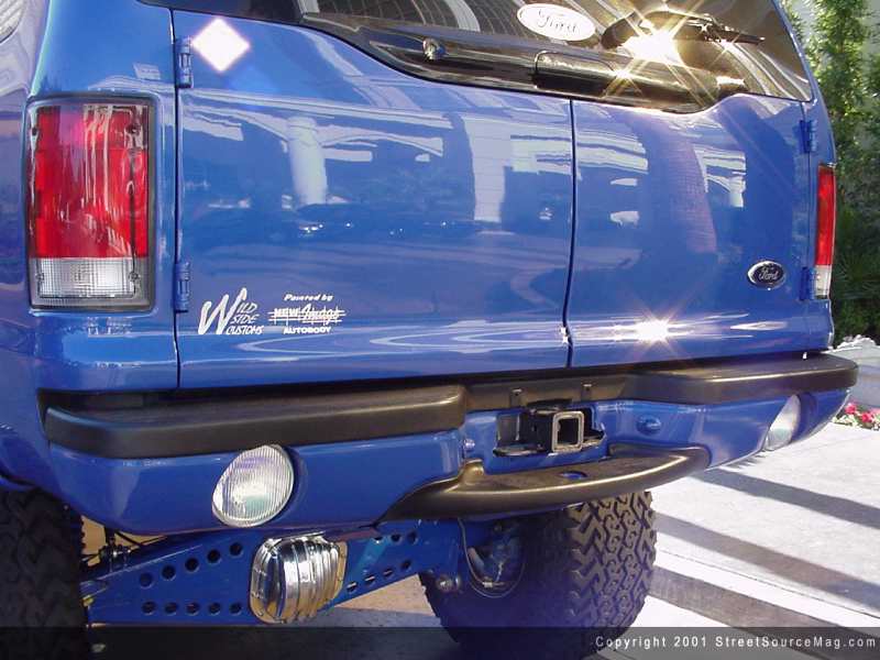Now that he was finally to the rear, John removed the bumper, smoothed it out and had a set of 6-inch PIAA lights installed. With the body reworked and prep work complete, it was time to get it painted. John decided to use PPG 2001 Audi Nagaro blue as the color of choice. New Image Auto Body of Temecula, California took matters in their hands and laid down enough paint and clear to make John’s Excursion shine in even the worst of light. In the near future, John also plans to throw on some ghost flames.