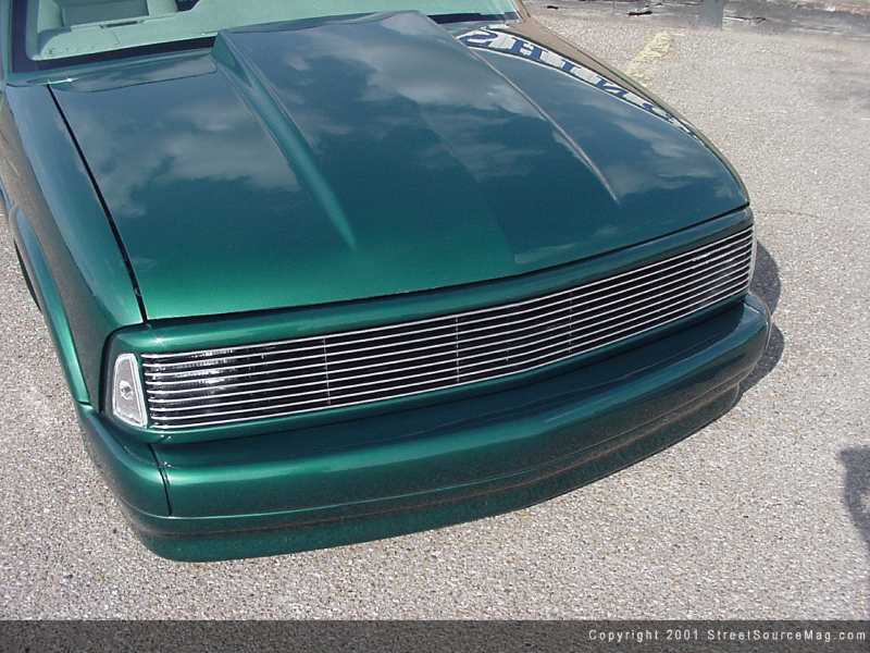 Jason ditched the stock grille and replaced it with a full phantom grille and shell, then prepped the S-10 for paint. Jason took this job into his own hands as well, utilizing his own shop, Bullock's Body Works in Whitehouse, Tennessee to lay down the Spies Hecker Meadow Green Metallic paint. Jason rolled his gleaming S-10 out of the paint booth and sent it to its next stop, the interior shop.