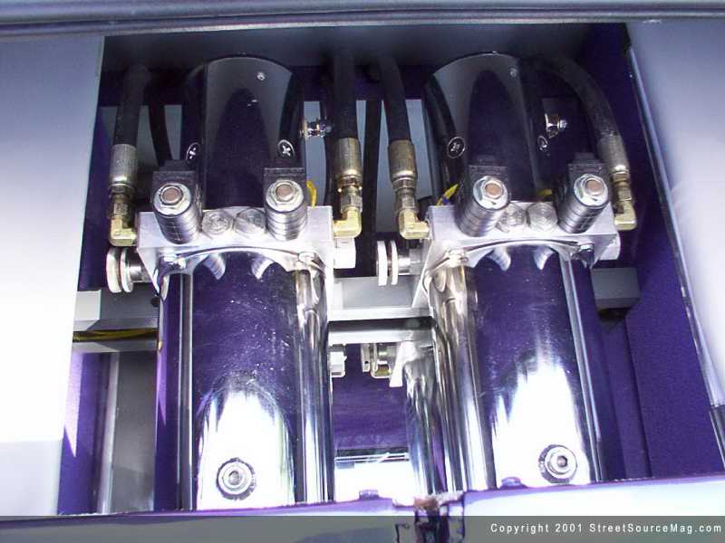 Now it was time to pick out a suspension for the Civic. Two Skyjacker chrome pumps with integrated dumps were installed along with 2 group 31 batteries and eight switches.  Reds ½ ton springs were installed on all four corners with 6" cylinders in the front and 8" cylinders in the rear. Will installed the entire set-up with the help of Adam Dietz.