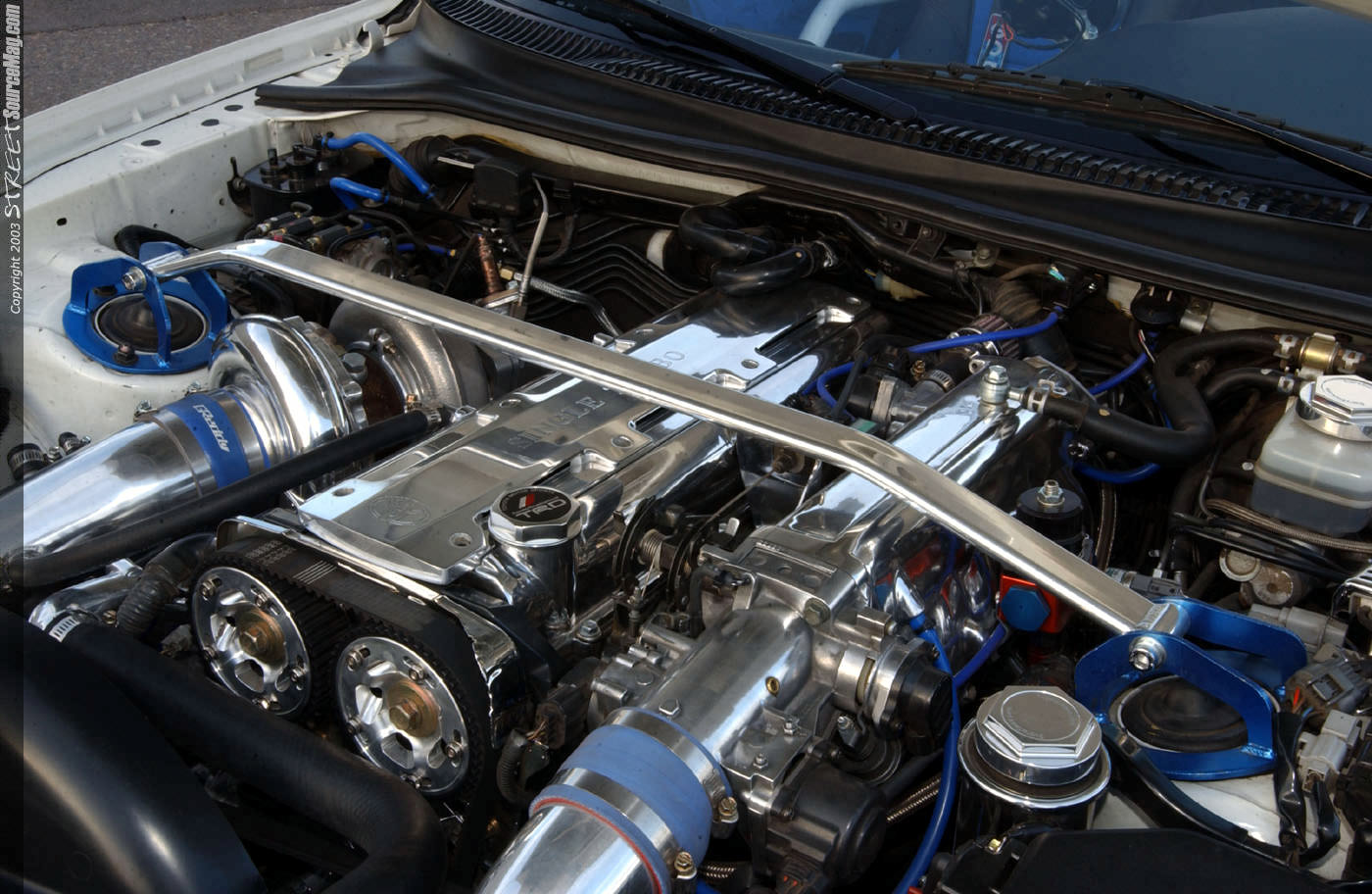 With the supra stock at 300 horse, something was needed done to ensure breaking traction without hesitation. With 101 octane in the tank and the boost at 36psi this Twin Turbo Supra would be pushing 800 horsepower after a few upgraded items. First on the list would be a set of T88 Greddy turbos.