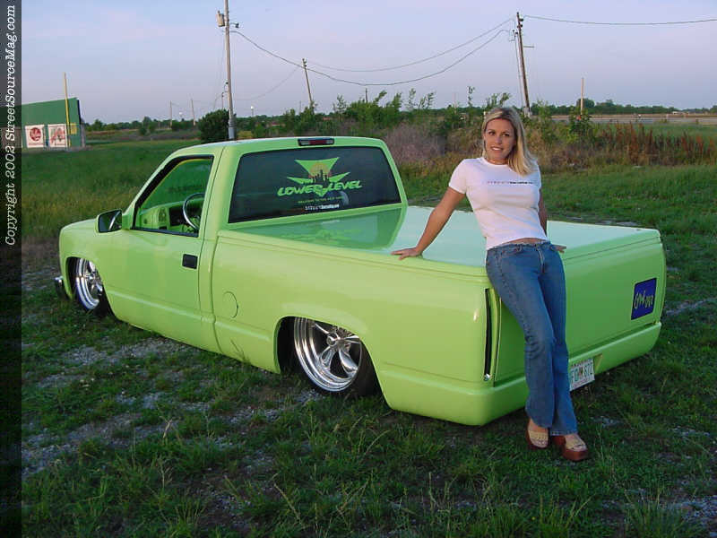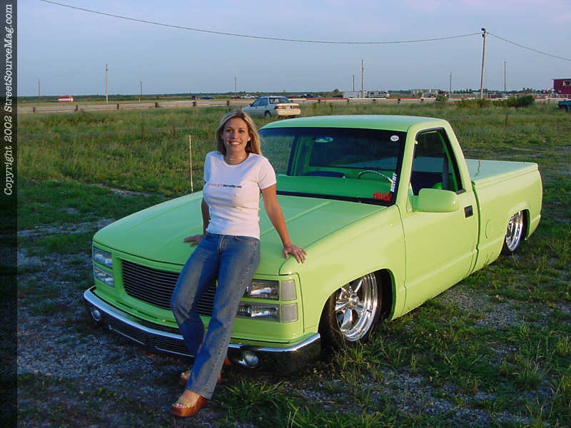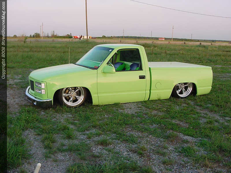 For other exterior changes Patrick Cordell took over and shaved the tailgate handle, molded the roll pan and bolted up a set of Cadillac tail lights.  When the body work was exactly the way Ramiro wanted it, with the help of Patrick, they layed down the eye catching Shrek Green you see before you everywhere they possibly could.