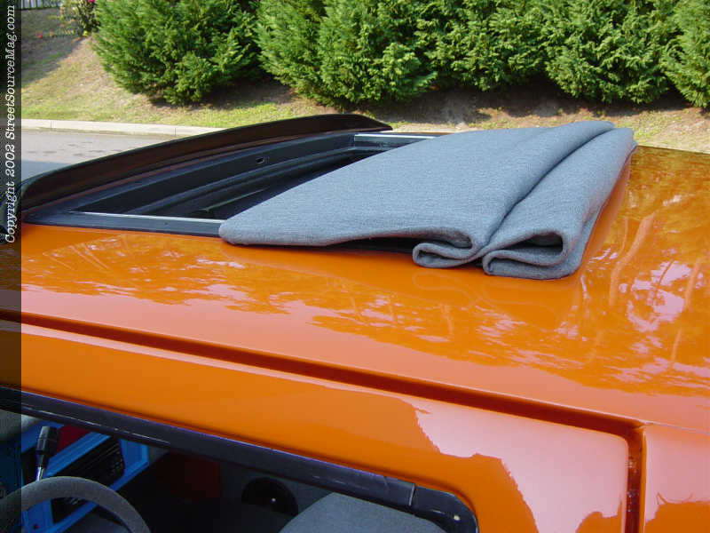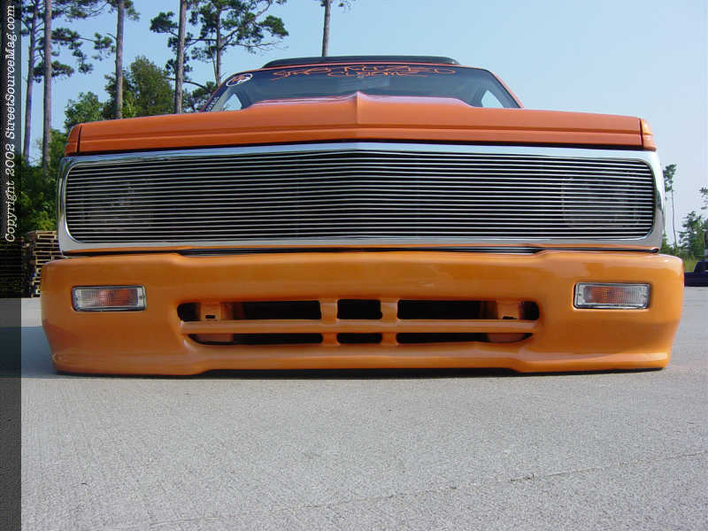 In order to stand out in a show field, the first thing you've got to have is an exterior that will catch everyone's eye. Mark has achieved this with his choice of bright colors and paint scheme. Before any of the paint was chosen, there were a few body mods and additions that were performed. The door handles, wiper cowl, emblems and taillights were all shaved.