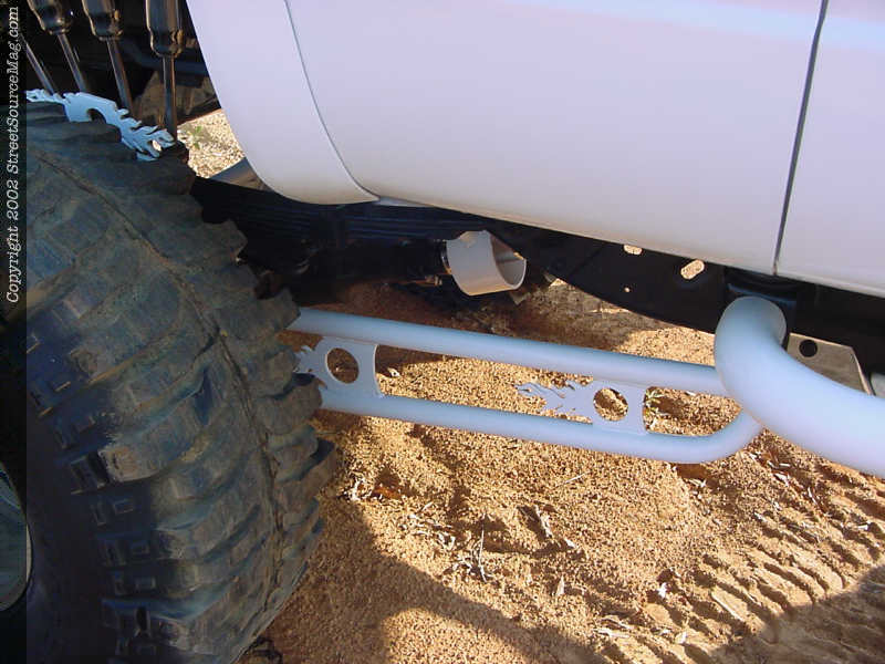 Knowing that low wasn't his preference, Chase decided to lift things instead. With a 12-inch Shiplash suspension lift and a 3-inch body lift, things would be looking up. Next to the suspension goodies would be a custom built set of flame traction bars along with4 custom-built rear blocks supplied with custom shock hoops. With the hoops in place, a set of Pro Comp shocks would be bolted up rear and front.