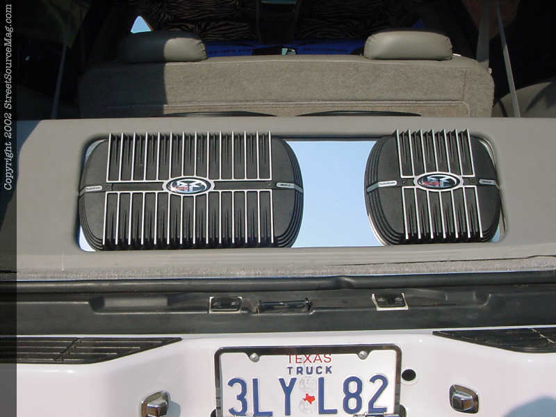Needing tunes, Chase would install a Pioneer 8000 screen along with JL Evolution mids and tweets for highs and four Rockford Fosgate 12's for bass.  Pushing the system would be a set of Rockford amplifiers, 800(2) and 250(2). Now needing video, Chase would have a Mobile Vision DVD player, molded VCR and 2 Phoenix Gold caps. Performance Audio of Tyler, TX, is responsible for the wiring.