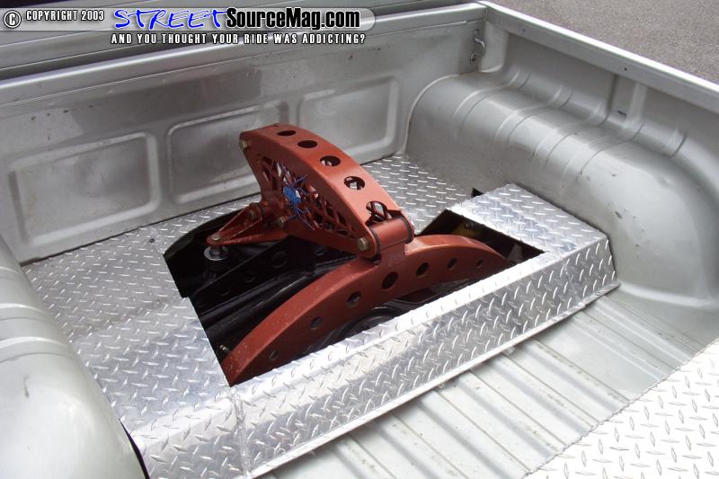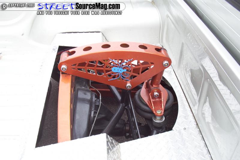 Jake called Clyde at Silver Star and told him he had always dreamed of building a new 02 Toyota Tacoma crew cab daily dragger. But see there was only one BIG problem Toyota only offered the crew cab 4-door version based on its ever-popular pre-runner and 4x4 chassis. So this left a big issue to be battled. First do you take it and try to get it to lay on pre-runner suspension or do you TOTALLY remove ALL of the pre-runner components and turn it into a creation that Toyota should have built from the start. Clyde decided that the best approach was to totally remove anything under the Taco that once resembled the factory pre-runner style suspension. Once the entire front end was removed the factory components of a 97 Taco donor were put into place. This allowed the Taco to take on a totally new looking life and a look that would change it forever. While the front end was tore down Clyde then used a pair of Firestone 2500 bags up front to ensure the truck would clear its new lo-profile rollers that it would receive once it was delivered to it's new owner. Now out back Clyde wanted to do something totally unique. Clyde started with a single 2600 Firestone bladder and decided to turn it into a custom mono-bag canti-lever design to allow the truck enough clearance in the rear. Clyde decided that while he was at it a 94 Toyota would donate it's rearend to the cause and allow the 4x4 prerunner suspension to be totally replaced with all 2wd components.