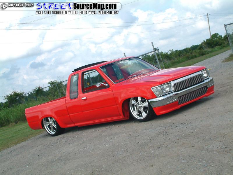 The gas filler door would then be shaved and moved into the bed while a set of Dimondback headlights would be bolted up along with APC Kandy red taillights. Trailer fenders would take place of the stock wheel tubs while the rest of the bed would be smoothed out and a ragtop cut and placed into the roof. Jamey would handle some of the bodywork while Don Bracken would help and finish the majority of the work.
