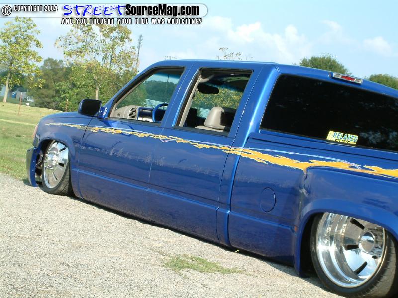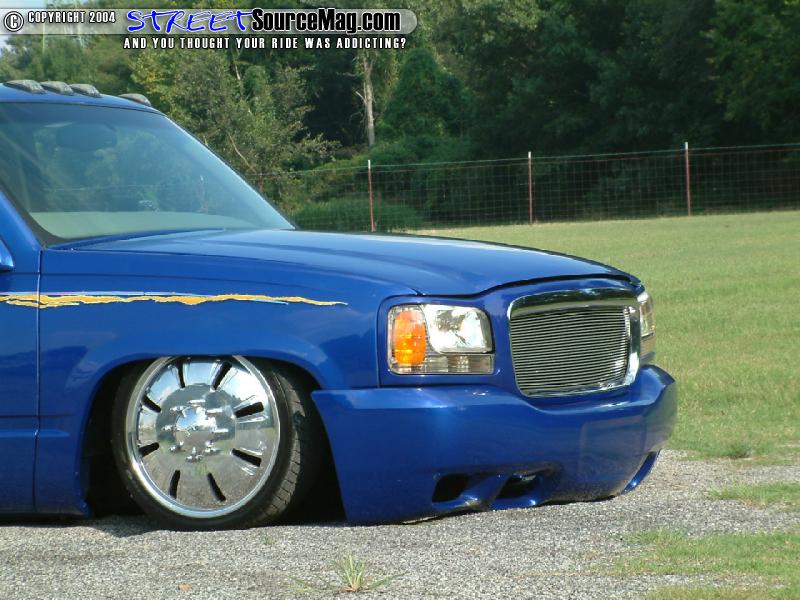 With the new stance the body would then need to be reworked to complete the over all exterior look. Starting upfront the stock hood, grille, headlights, fenders and bumper would all be replaced by a set of Escalade products for a newfound look.