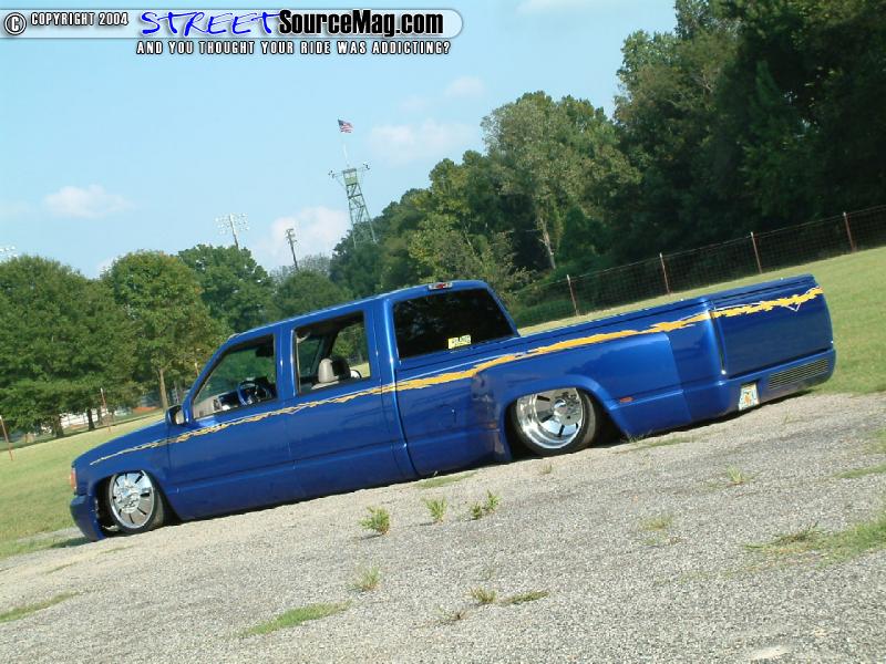 Getting things moving forward the suspension would be worked over bringing out a respectable height when parked at shows or in a parking lot. To bring the big body down to the ground Terry would have KustomWerks of Union City, TN handle all the suspension needs.  The front spindles would first be replaced with a set of custom drop spindles. Air bags, compressors and tanks would then all be installed to help lift the dually. Not yet low enough KustomWerks would then apply a 3-½ inch body drop helping engulf the 19-inch APP wheels.