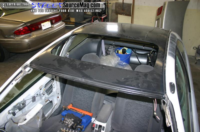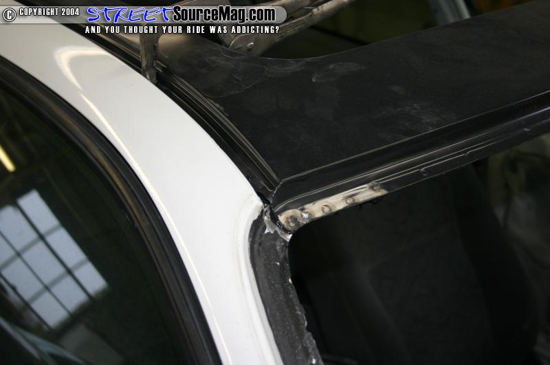 Lay the roof down where it needs to sit and make sure it is level. Next you will need to secure the roof to the car by using clamps. Do not make them super tight, just enough to see some glue start to squeeze out. Next pull out your welder or spot welder and spot weld the areas that you are able to.