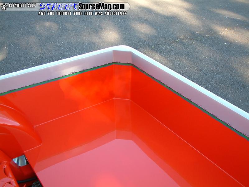 Next the cab pillars would be shaved along with the doors being notched to match the new cab pillar contour. The mirrors would then be shaved along with the inner door lock, all seams, corner markers and cowl. Once the bodywork was complete the Mazda would be sprayed with HOK orange and silver paint two-tone paint job.