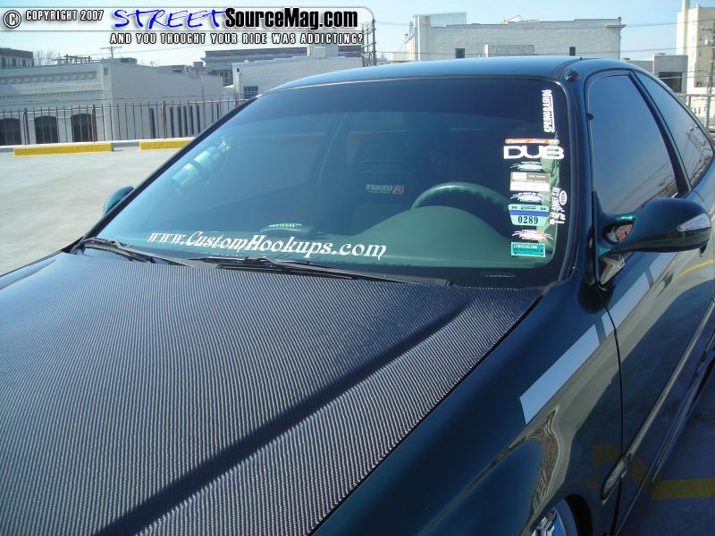 When asked his reason for building the car featured here he responds, “Because in Springfield nobody has taken a Civic this far”. The exterior touches on this car are as clean as they come. A Wings West body kit takes the place of the factory plastic and a JSP carbon fiber hood installed. Body mods on this custom import include a fully shaved truck lid with flip kit and angled license plate box, all emblems shaved front and rear and front bumper smoothed.