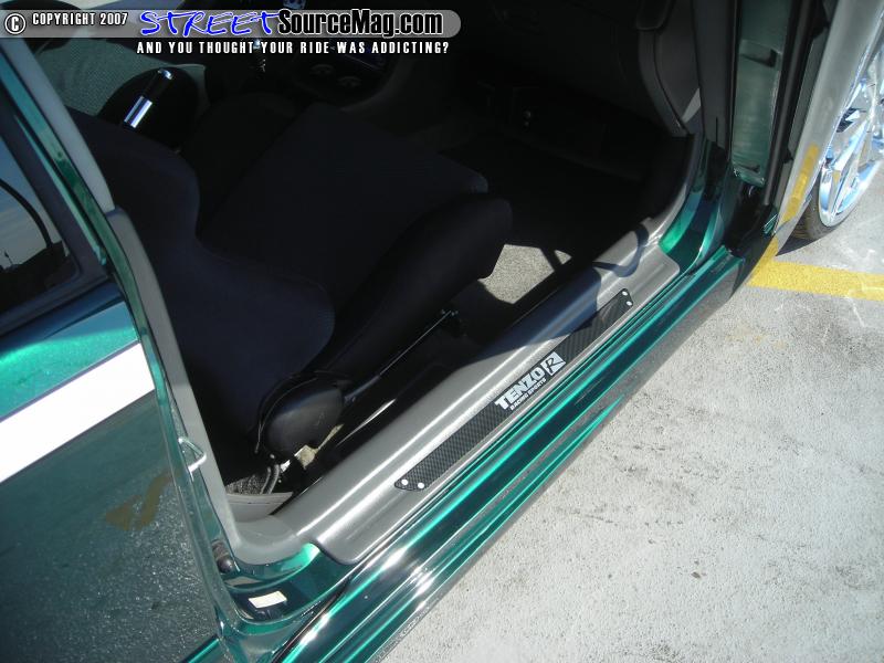 The custom work continues on into the interior. Black and gray Tenzo R racing seats were put in place of the boring stockers. The rear seat and doors were then upholstered to match and CIVIC embroidered into the backseat. Brad then installed a Panasonic CD player along with Audiobahn AW12002 subs and Pioneer mids and highs. Powering this setup is a 12001DT Audiobahn amp and Stinger battery.