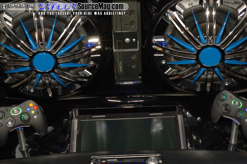 Set Powerbass 6.5” Component Speakers, Power Acoustic 14” Monitor,(2) Powerbass 12” Subwoofers, Solid Audio F43 A/B Amplifier, Solid Audio F10 Class D Subwoofer Amplifier, XBOX-Modified, 60 games on Hard Drive, (2) Wireless XBOX Controllers, with Hidden Wires to XBOX, Playstation 2, Vector 450 Watt Power Inverter, Stinger Battery that whole system is wired together using all Tsunami installation products. Another aspect of this car is the fact that it can be seen from the space station, all together the car has 258 pieces of neon as well as a custom etched plexi-glass name plate on the back deck that illuminates to say the name of the car "Sweet-n-Low".