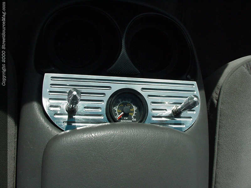 The interior of Dave’s Ford is just as clean as the exterior. Howard Krusey of Complete Auto Upholstery in Altamonte Springs, Florida laid down new carpet throughout the cab in Dave’s Ford. A billet overlay control panel was inserted, along with white face gauges with billet overlay.