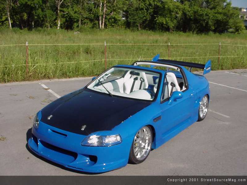Knowing what he was wanting, Donald decided putting out $12,500 on a Honda Del Sol would be well worth the dollar. So back in January of 2000, the money was spent and the beginning of a whole new dominator of the sport would begin. Although this journey would take about a year and a half to build to this point, as we all know it will never be done. Donald knowing his way around the shop would make the complete customizing of the Del Sol a process that would move at a fairly quick pace. With help from friend Mark Ramirez, the body would be first on the long list of modifications. Working the front would top the list with some modifying ideas new to the Del Sol scene. With custom mounting a set of 1997 Honda Civic headlights, a custom carbon fiber hood would be bolted up with chromed hood hinges to match up to the head lights much like a stock fit. With a Kaminari front bumper customized to fit with the new headlights and also giving the already sporty Del Sol a meaner look. Buddy Club side skirts and rear bumper would be mounted to complete the body kit for an over all aerodynamic stance. The grilles found in the front of the Del Sol would be chromed along with the windshield wiper.