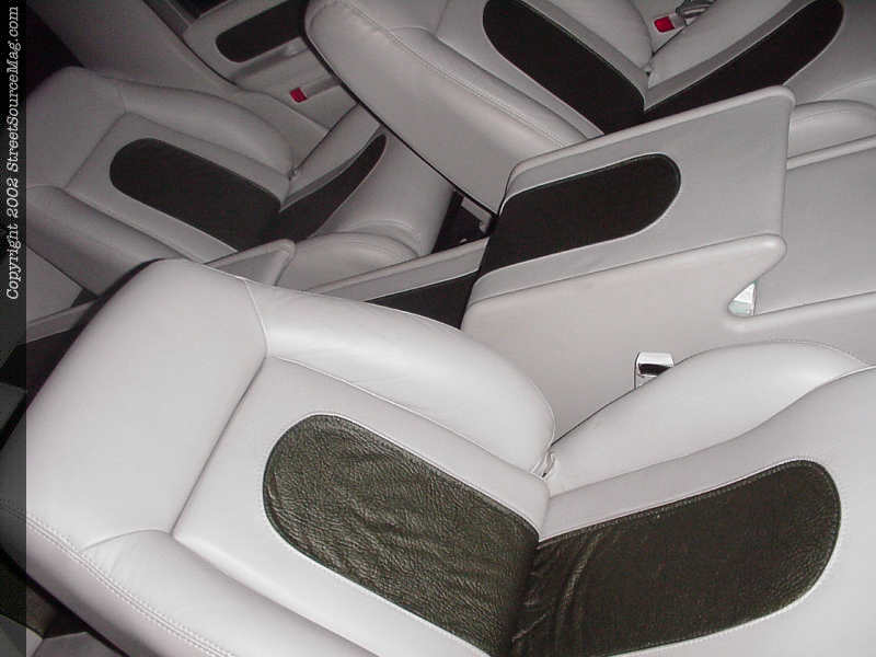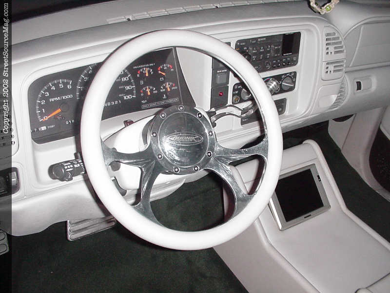 All seats are glide engineering done by Willy of Brea, CA and wrapped in the same leather along with alligator skin centers. The stock steering wheel was replaced with one provided by Budnik.
