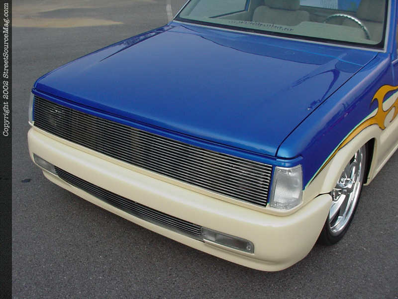 Andrew scrapped the front bumper and replaced it with a model from a Toyota 4 Runner, then installed a phantom grille shell. The inside of the bed was also replaced with sheet metal, for an overall smooth appearance.