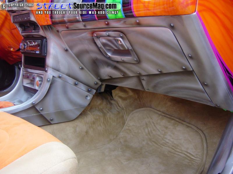 Now that Jonathans Type R had a paint job that could take on ANY paint job in the scene, it was time to make the interior match. The seats, headliner and floorboard were all stripped in favor or a new coating of tan and orange suede.