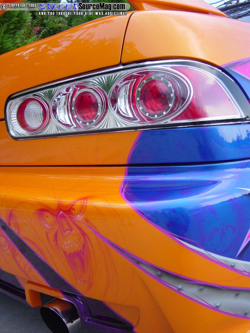 Now here is where Jonathan REALLY set his car apart from the rest. Most people would stop here and decide the car was ready to show, but not Jonathan. In order to guarantee he would bring home several best of show awards, he decided to carry the paint scheme to the entire undercarriage of the car. The entire unibody and sub frame were stripped and painted purple with orange accents. The gas tank was painted like sheet metal screwed together. The sway bars were powder coated before they were reinstalled. Every bolt on the undercarriage was coated and reinstalled. This shows that Jonathan went the extra mile not to leave ANY bolt on his car untouched. Now after looking at a car like this you would assume it's a trailer queen. That's not totally true in this case.