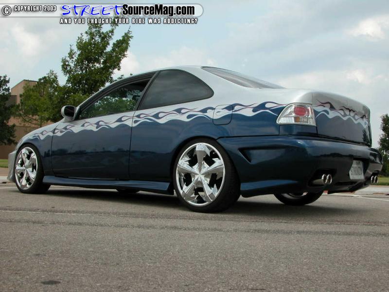 Now, Doug didn't care for the natural headlights, which is why he upgraded to the APC after market headlights and taillights for a perkier look. Then, turning to the crew and Jason Hughes at Street Dreams in Tulsa, Oklahoma, the Civic was given a finish of mesmerizing Lexus blue paint accented with blue and purple tribal flames. To complete the transformation he also continued the blue and purples throughout the tweed interior. With that kind of nip and tuck, it was time to give the ride a few more helpful mods to ensure it was everything Doug had had hoped it to be.