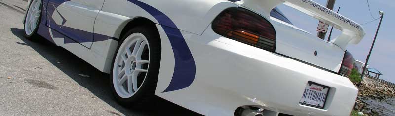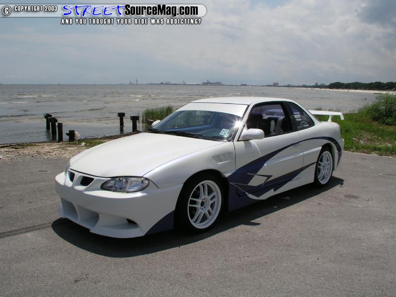 When Jeff Smith of Ruston, LA decided to break into the custom scene he wanted to build something totally different then the typical Honda's and Mitsubishi's that dominate the show scene. He decided to take and build a 1996 Pontiac Grand-Am that he scored for a mere 10G's in the fall of 1998. With time and patience Jeff's Grand is making a Grand impact on the scene. The first order of business was to destroy the grocery getter look that was haunting the car upon it's arrival in Jeff's driveway and since custom parts for a Grand Am are none to slim Jeff knew that anything out of the ordinary was going to have to be hand built. So with this in mind Jeff set out on his mission. To get things rolling Jeff took a pair of Honda donor Z-3 fenders and grafted them into his stock fenders.