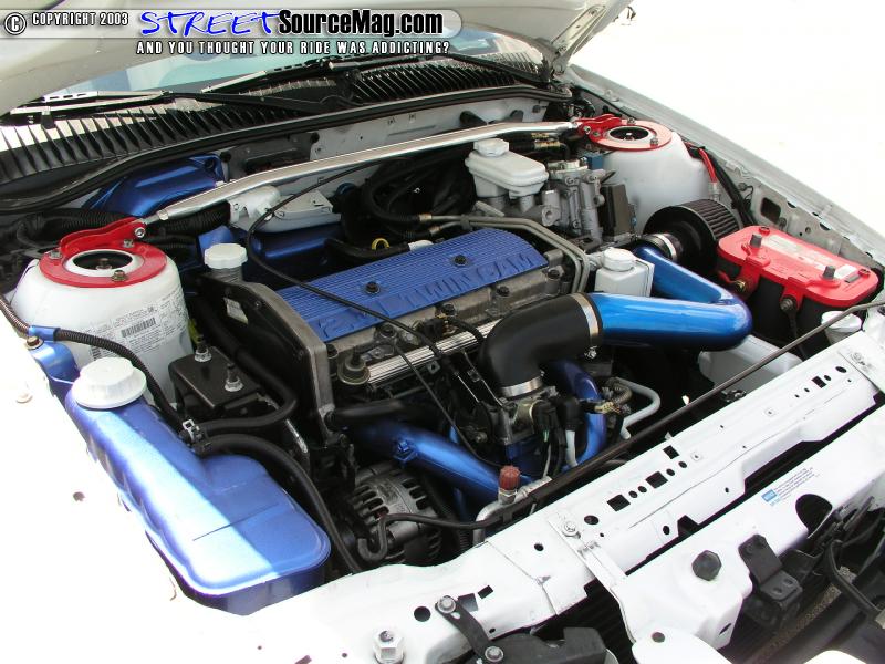 Now what good would a car be that couldn't go as fast as it looked so Jeff decided that the tired Grand Am could use a lil pep and opted to yank the 2.4 DOHC having it completely rebuilt and bored .030 over and add some JE Racing jugs to boost the compression. Eagle was the rod choice at hand, to ensure the jugs stayed in the straight line at all times. To insure that the engine received ample O2 Jeff decided a 3-angle valve job and porting and polishing the factory head was in proper order along with a cold air intake system. Not wanting to take a chance on expelling spent gasses a Borla Pro XS series dual exhaust was in order. To ensure that not one single pony escaped between the motor and tranny a Centerforce dual friction clutch was then installed.