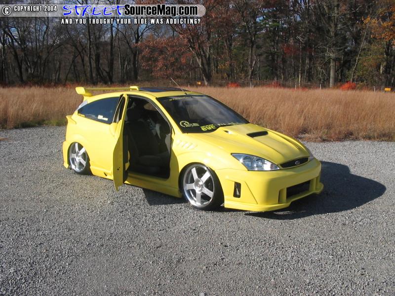 A suicide door kit was installed with custom lower arms so that the wires could be run neatly inside the arm. Finally Keith Fenstemaker of Orefield, PA would paint the Focus Dupont Yellow/Silver Pearl.