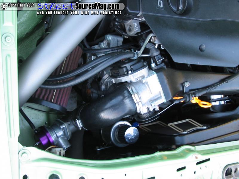 The 2001 Passat 20v 1.8T motor would fit perfect in this car with a few modifications, and with the lightweight of the car, it would give it the horsepower he was striving for. Jason would add an ATP manifold, T3 Super60 stage 4 turbo, Tial External Wastegate, Greddy Type S blow off valve, 380 Injectors, all custom hand fabricated intercooler pipes done by Jay, Spearco front mount Intercooler,