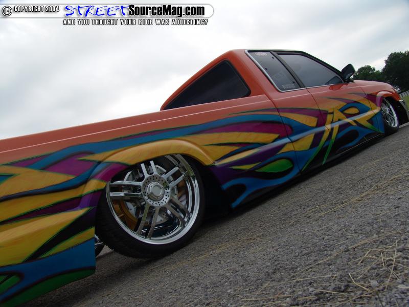 With the major modifications a thing of the past, Chris would then begin working the exterior. To help bring the vision to life KUSTOMWERKS would once again be called upon. For starters the stock hood, grille and bumper would be ditched in favor of new more trendy items. In their place a 2600i hood, chrome/billet grille and a Toyota 4wd bumper would be bolted up. The stock fenders would then be shaved of emblems and corner lamps.