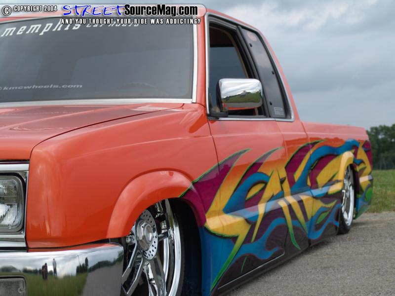 Having the body fixed to Chris’s liking it would be time to hand the project over to Dustin Haven of Scottsburg, IN for his paint expertise. While in Dustin’s hands a HOK Tangelo Pearl would be applied as the base while multiple HOK colors in the form of graphics, flames and pin striping would be laid down to help set things off. Dustin would also take his time in painting many engine and suspension parts for the full out custom appeal.