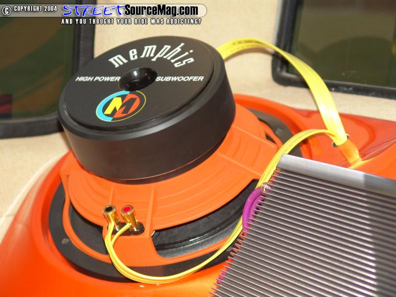Memphis Audio Belle and 1000D amplifiers would then be installed to power the sound through the system. 2 Memphis Audio digital 1 farad caps and Memphis wire keep the system current running efficient.