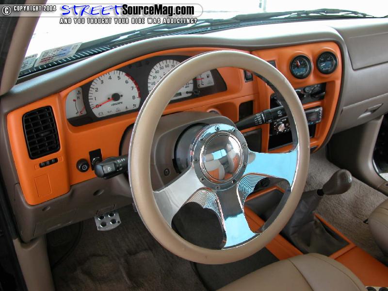Jimmy Davis at Stan’s Car Stereo in Lubbock worked the fiberglass magic and painted the dashboard, console and amp rack to match the exterior. Mark then swapped the stock head unit for a Clarion DXZ825 CD player, running tunes through Infinity mids and tweets, an Alpine R12 sub, all powered by an Alpine MRV-F540 amp.