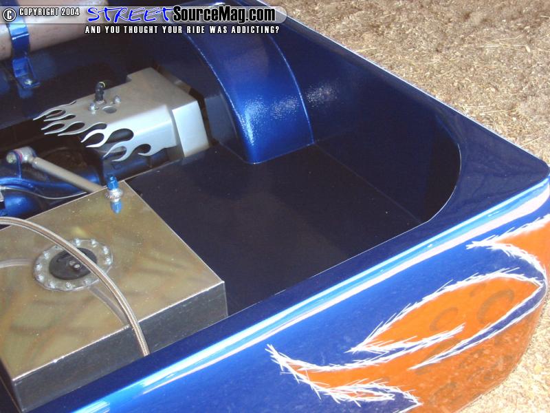 To finish it off a 10 gallon aluminum gas tank was placed inside the bed. An 11 bar billet grille inside a 4Runner shell would be installed next, along with H4 diamond cut headlights. To give the cab the finished look he was going for Showdown Accessories 2 ½” cowl hood was slapped on to be one of the few bolt on items on this truck.