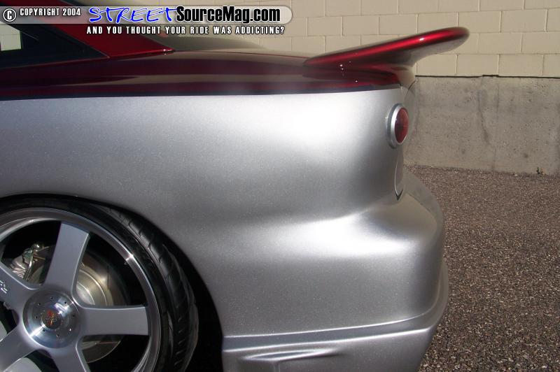 Then once their eyes make it pass the eye Kandy, they notice all the custom body work ranging from a one-off custom wide body, RKSport Pro Stock Spoiler that is molded into the trunk lid, custom painted Fiber Images carbon fiber hood, to custom taillights using parts of aftermarket RX-7 tails. The Queen Z is also equipped with a Lamborghini style door conversion.
