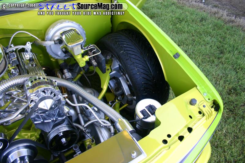 Starting with the exterior of the truck Mark knew that there was an extensive amount of bodywork that would need to be completed. Starting at the front of the truck Mark tossed the stock hood and slapped on a Ram Air II hood, and underneath it a Trenz 30 bar billet phantom grille was installed. The door handles were shaved as well as the inner fenders and body seams.
