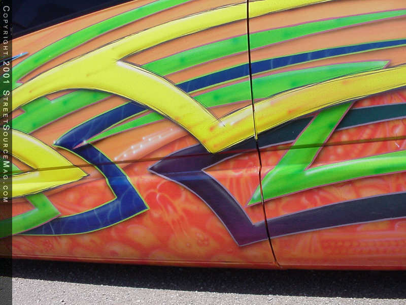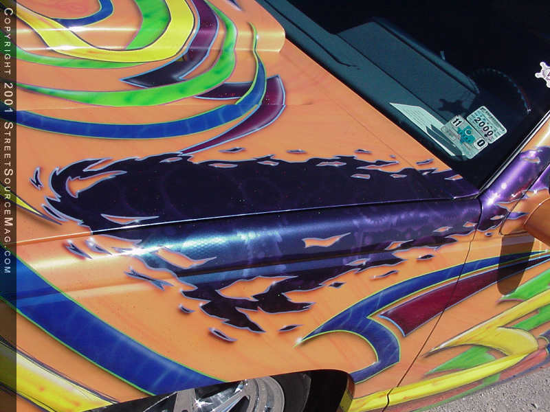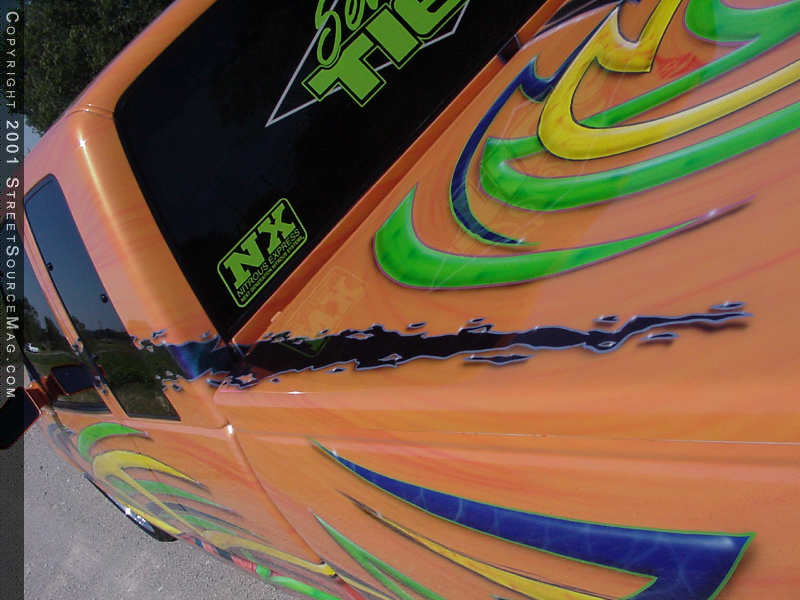 Now that the body was completed and ready for paint, it was time for Max to go crazy. With his own thoughts in hand, you can spend hours looking at all of the airbrush work on Tom’s truck. To throw people off, the paint scheme twist’s in the middle and throws out different graphics on opposite sides of the truck.