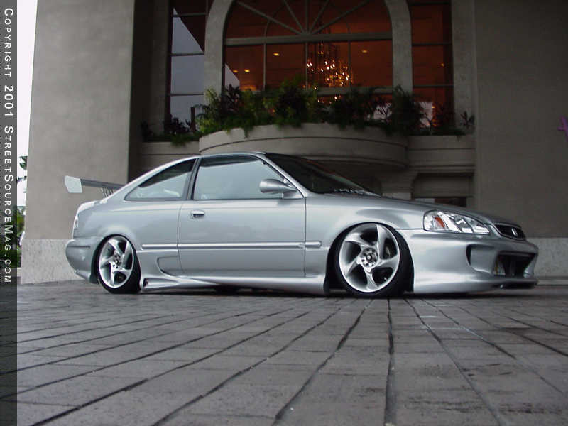 When it comes to capturing attention, one must have the look of their vehicle built with taste. Well to manage this feat, Lemwell decided to bolt up an Andy’s Autosport Combat body kit to give his civic the aggressive look he was wanting. While laid out, the kit is just a hair from kissing the ground; this Civic will grab anybodies eye. To compliment this phat body kit, the ultimate decision was to bolt on a Aluminum wing which was purchased from VIS.