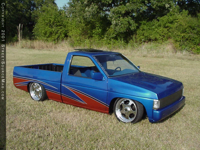 After attending local shows around the Dallas area for years, always seeming to be on the outside looking in, it was now time to figure out the new trends and come to the times. So in early ’97 after finding the dates for Texas Heat Wave, the show to was soon at hand to get new ideas. Well now it was showtime, time to get in the bone stock truck and head to Austin to see what had been going on in the scene. Since he had been out of it for a few years up to this point, this would be a good experience. Well, needless to say, he was completely inspired by all the new modifications that were going on. Now all giddy with ideas, it was time to hop back in the little stock Nissan and head home to the garage knowing he had tons of work be done. Within the next few months Ronny’s Nissan would go through extensive change and would be well on it’s way to fame. One of the first things on the list would be to have the height adjusted by the use of Firestone airbags for some quick lift.