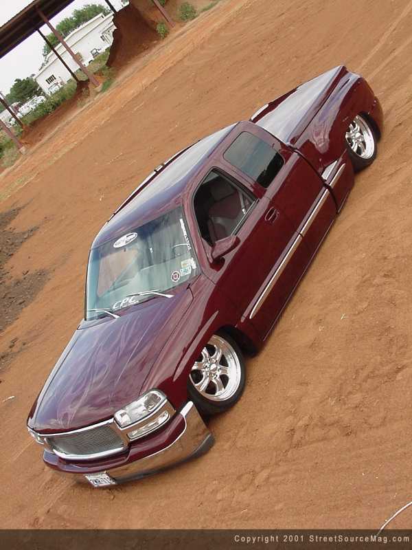 In March of 2000, after dropping down a cool $30,000 to purchase his step-side and to please the powers that be, it took 9 short months to complete and run wild on the show fields. With the words of prayer and help from the lord, Shawn would find the build up a smooth one. Knowing that the clean smooth look Shawn had in mind, many items would be color matched instead of removed to keep things a little different then what people were used to seeing. After pulling off the front bumper cover along with the door handles they would then be prepped and color matched Dupont Toreador red along with the inner wheel wells.