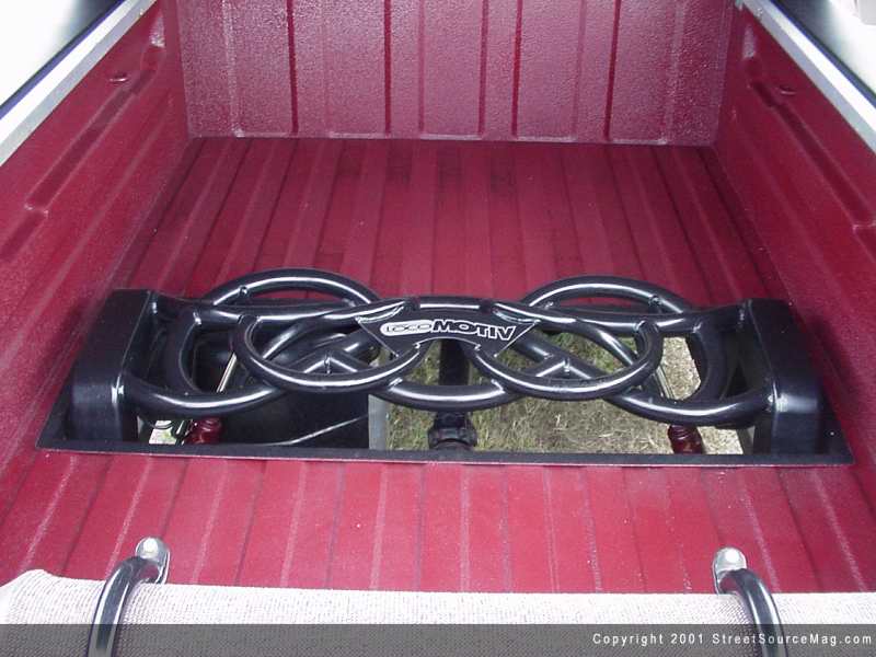 With the exterior confines completed, it was time for Shawn to move on. Achieving the next goal would be simple for Shawn. Turning to the professionals of Locomotiv Houston, Texas, the suspension needs would be met to perfection. First on the list would be to section and box the rear frame rails giving added clearance of the rear axle along with installation of a custom 2-link provided by Locomotive. Next the stock shocks would be replaced by a set of Toxic shock applications. To help bring the rear up when needed, a set of Firestone 2600 bags would be welded in. Bringing the front down even with the rear would be utilized by a set of DJM upper and lower control arms. After replacing the stock front shock applications with ones of Toxic, a set of 2800 Firestone bags would be mounted to help lift the front when needed. Not completely satisfied with the overall stance of his new project at hand, Shawn decided to have the crew from Locomotiv bring the body down 3 inches level with the undercarriage when aired out. A Nitrogen bottle along with a couple of compressors supplies the air when needed. After tearing up the stock gas tank from dragging often, Shawn had to replace the 26-gallon plastic tank.